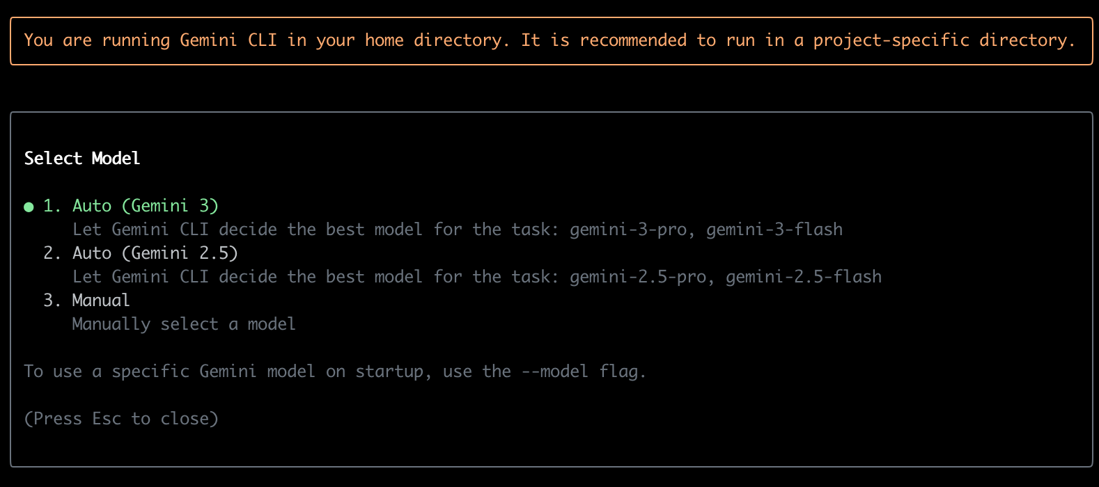 Anda dapat memilih model Gemini yang diinginkan. Pada saat codelabs ini dibuat, Gemini 3 Pro dan Gemini 3 Flash sudah tersedia di Gemini CLI untuk user berikut ini:
